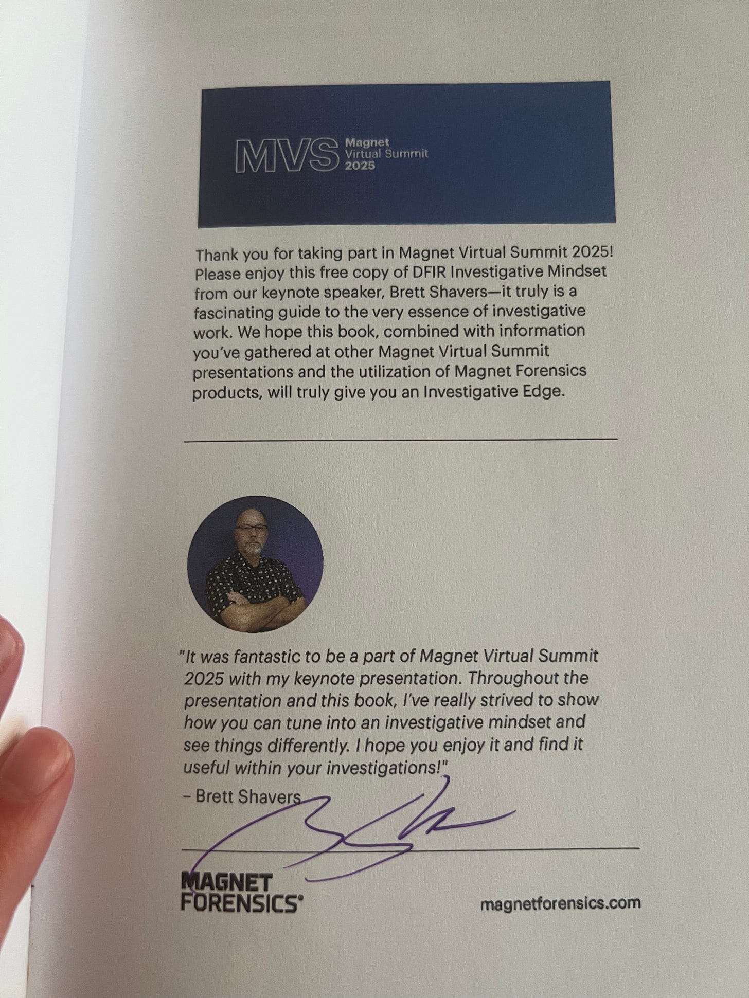 Before we actually get started, I want to plug the community events. I actually got this book for attending Brett Shavers’ talk on the “Investigative Mindset” at Magnet Virtual Summit back in February. I enjoyed the talk and found some very insightful (and useful information)